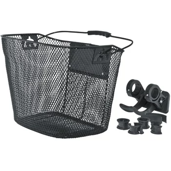 Klasszikus formájú első kosár gyorsrögzítéssel. Mivel kormányra rögzíthető így szinte kivétel nélkül minden kerékpárral kompatibilis. Általában az első lámpa sincs útban. A gyorsrögzítő adapter a sztenderd 25,4mm-es befogó átmérőjű (ami a széleken 22mm) kormányokhoz alkalmas. |