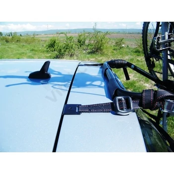 Hevederek kerékpárszállítók rögzítéséhez hátsó ajtóra gumiborítással ellátott kampókkal.