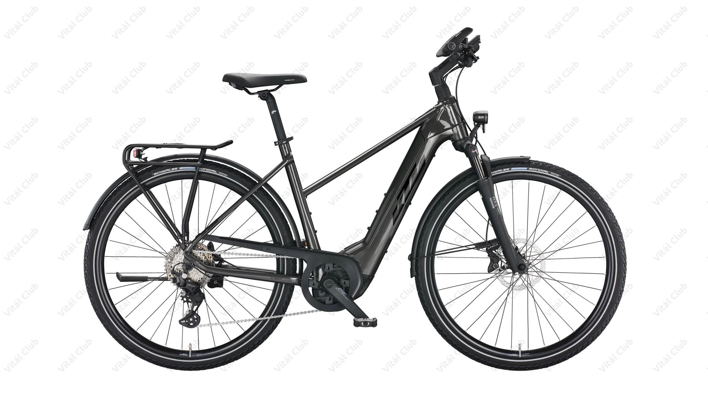 Gumiból a német Schwalbe Marathon Mondial Perf. RaceGuard köpeny került a kerékpárra 47mm-es szélességben. Szélessége okán kényelmes, a mintázata pedig tökéletes aszfaltos túrákhoz.