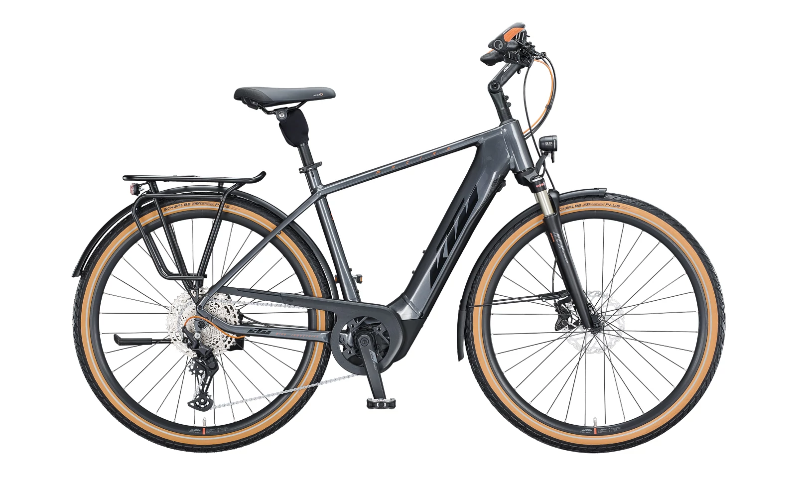 Gumiból a német Schwalbe Energizer Plus Performance köpeny került a kerékpárra, ami kifejezetten az elektromos kerékpározáshoz lett fejlesztve. Könnyedén bírja a nagyobb súlyt és nyomatékterhelést. Az 50mm-es szélesség okán nagyszerű kényelmet ad. A mintázat pedig csakis az aszfaltos száguldozást hivatott elősegíteni.