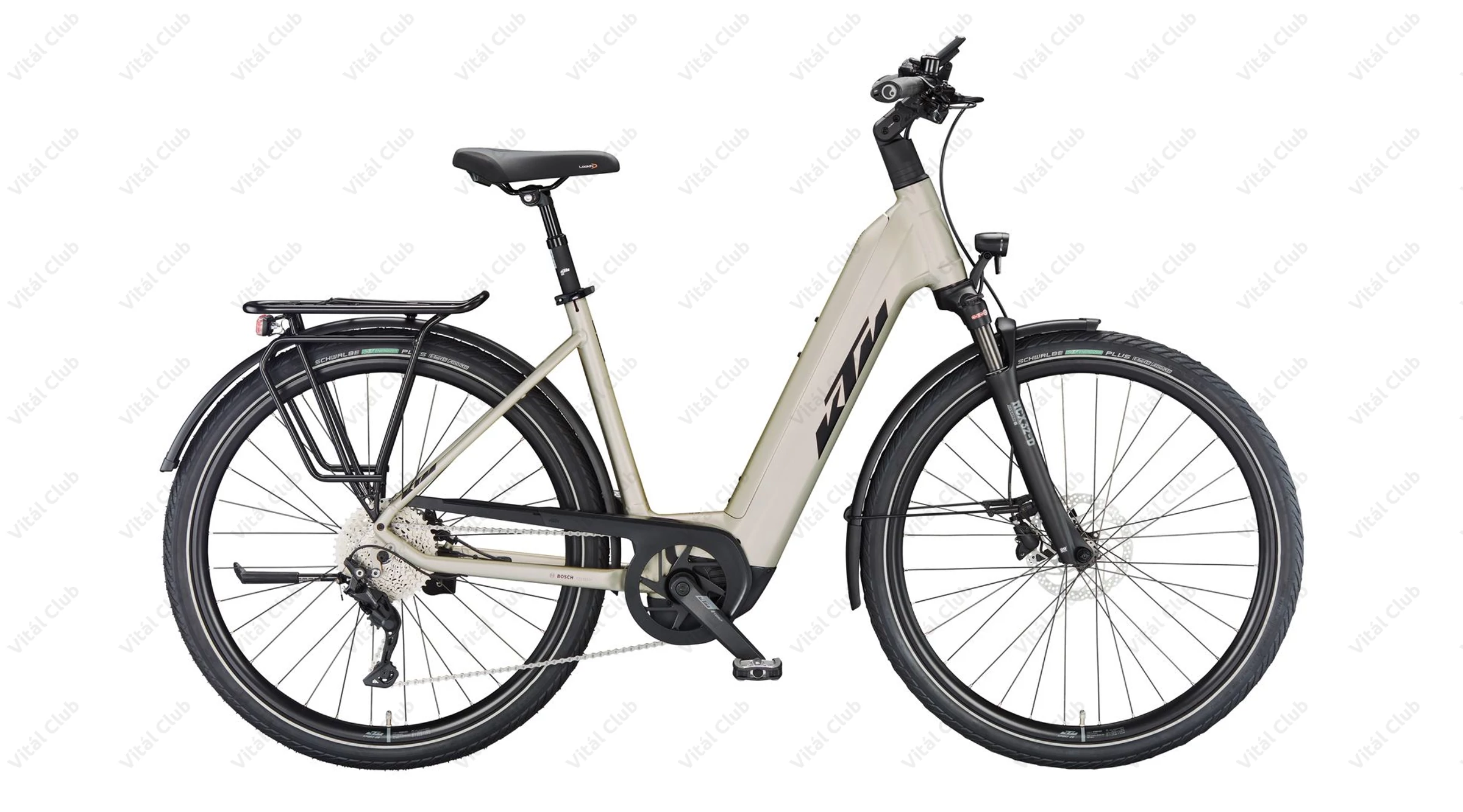 Gumiból a német Schwalbe Energizer Plus Perf. GreenGuard köpeny került a kerékpárra 50mm-es szélességben. Szélessége okán kényelmes, a mintázata pedig tökéletes aszfaltos túrákhoz. Ez is szintén egy az eBikeok igénybevételéhez fejlesztett darab.