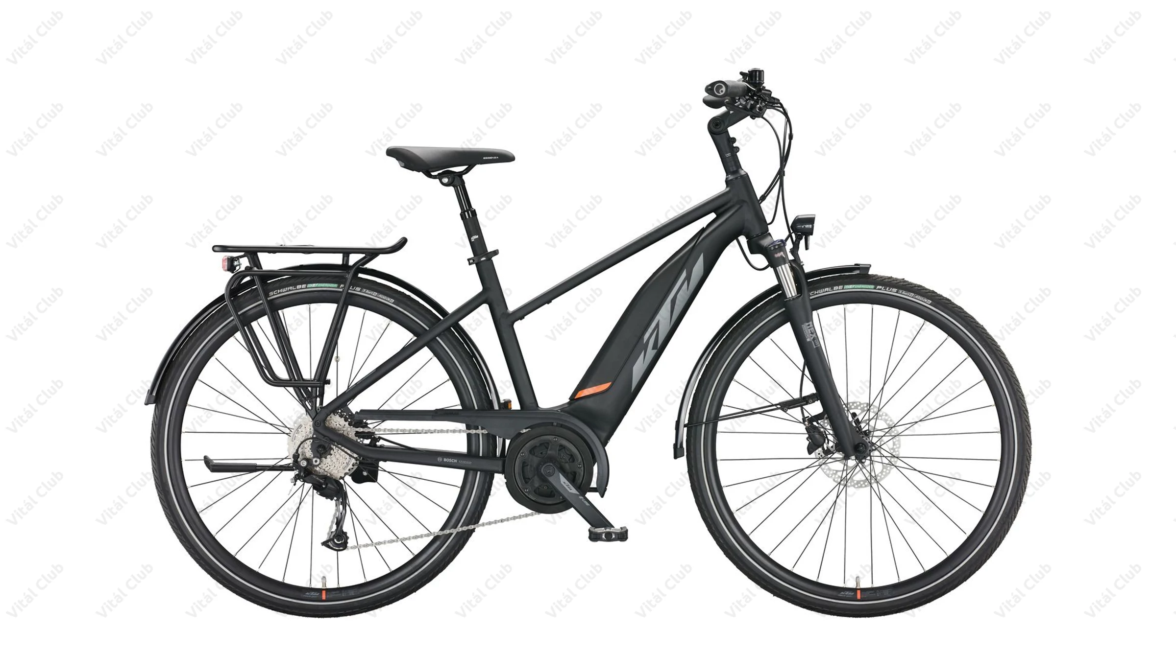 Gumiból a német Schwalbe Energizer Plus Perf. GreenGuard szintén e-bike specifikus, szúrásálló köpeny került a kerékpárra 40-622 méretben. Ez a köpeny egyébként reflexcsíkkal is el van látva, így nyújtva plusz biztonságot a forgalomban, vagy pedig sötétedés után való közlekedéshez.