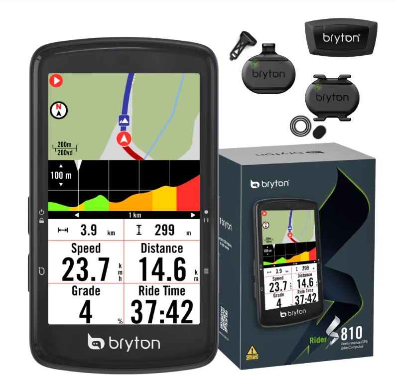 A Bryton Rider S810 egy könnyen kezelhető kerékpáros eszköz 3.5"-os érintőképernyővel, gördülékeny navigációval, valós idejű követéssel és akár 50 órás akkumulátor-üzemidővel. Tartalmazza a Climb Challenge 2.0-t, előre telepített térképeket, hangalapú keresést és Group Ride funkciókat, hogy még élvezetesebb legyen a bringázás.